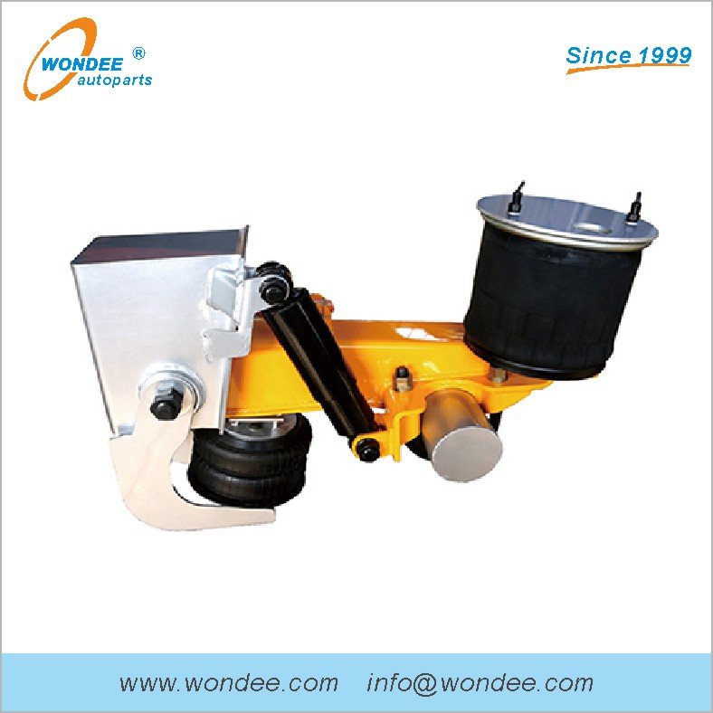 This heavy-duty lifting and unlifting type semi trailer air suspension is engineered for high-capacity, smooth and efficient vehicle performance. It connects the trailer frame to the axle system, distributes loads evenly, and effectively reduces road vibration. Especially designed for the American market, it improves ride quality and load handling for various trailer types such as flatbeds, tankers, lowbeds, and skeletal trailers.